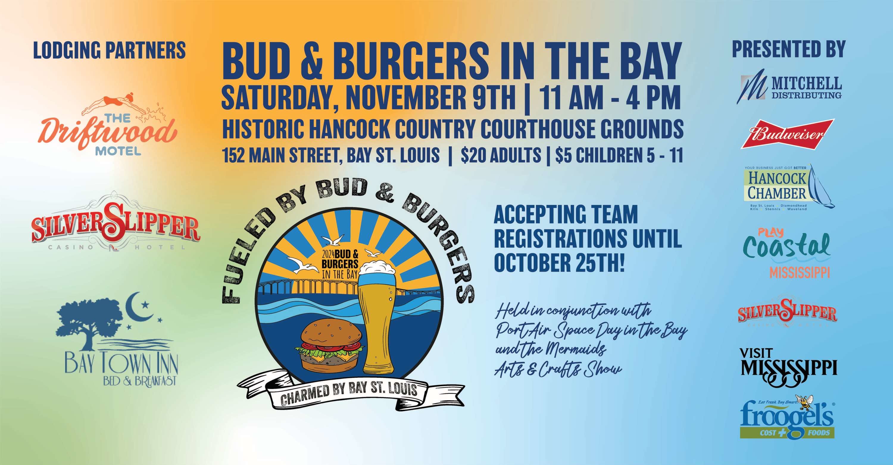 BUD & BURGERS IN THE BAY IS NOT JUST ANY BURGER COMPETITION: It's also a celebration of the many accomplishments in space and ocean exploration at Stennis Space Center. The event promises a day filled with incredible experiences, including live music, and interactive exhibits.