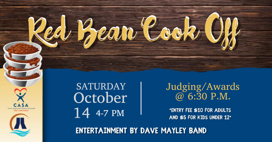 Join us on Saturday, October 14, 2023, as over 20 teams vie for the title of Red Bean Champion all while supporting CASA of Hancock County's efforts to provide a trained community volunteer to advocate for the abused and neglected children of our community.